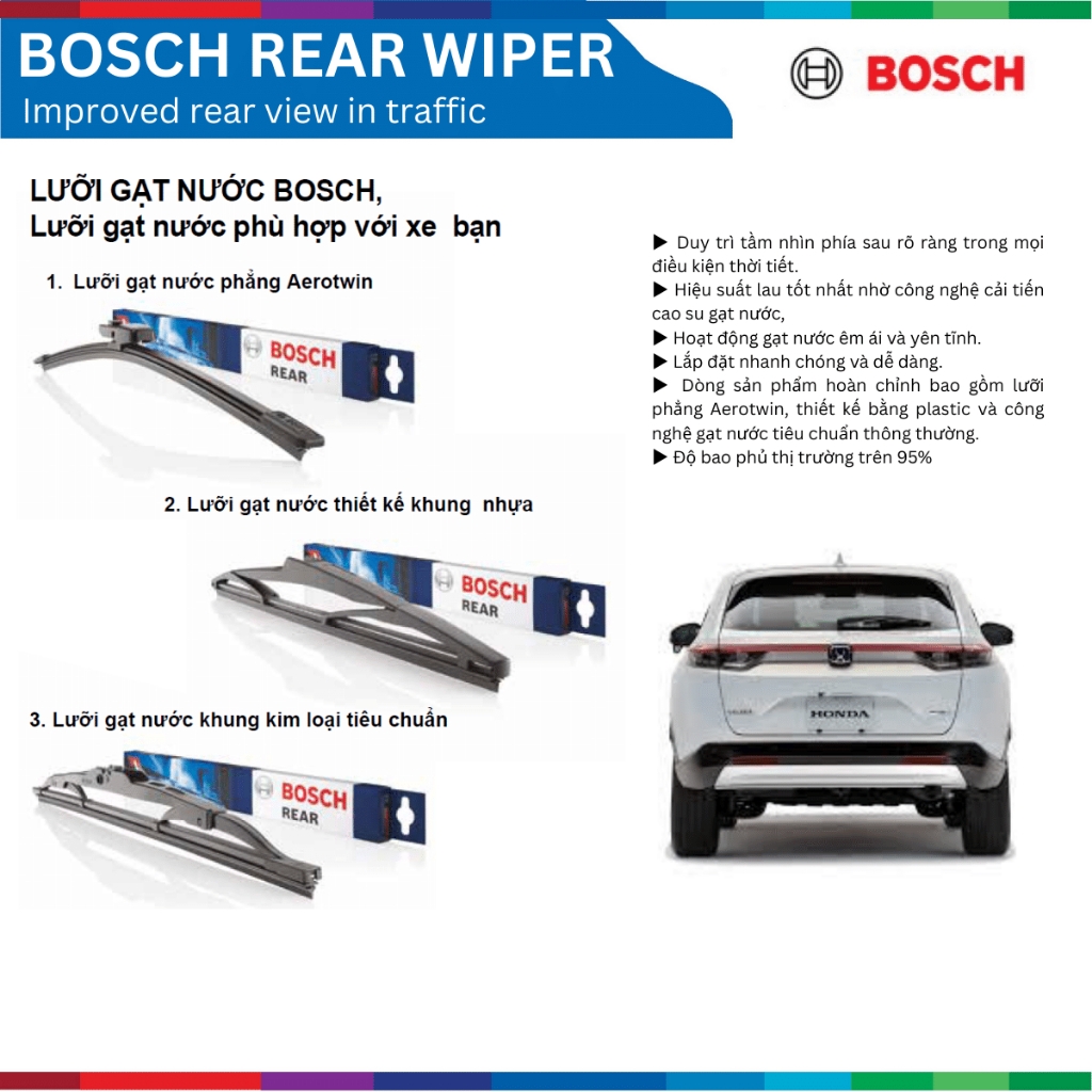 BOSCH Rear là gạt mưa sau phù hợp nhiều dòng xe ô tô tại thị trường Việt Nam.