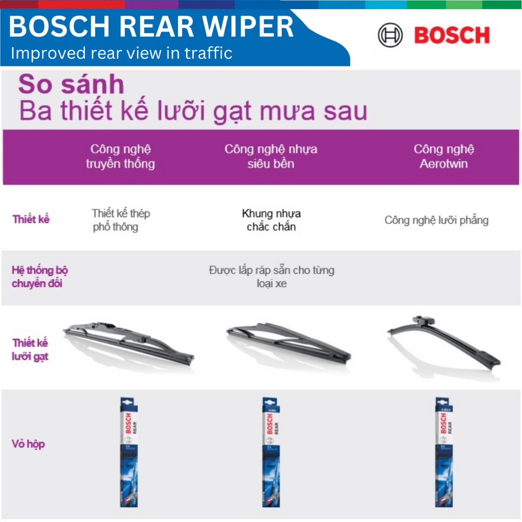 Dòng sản phẩm gạt mưa sau của Bosch bao gồm: