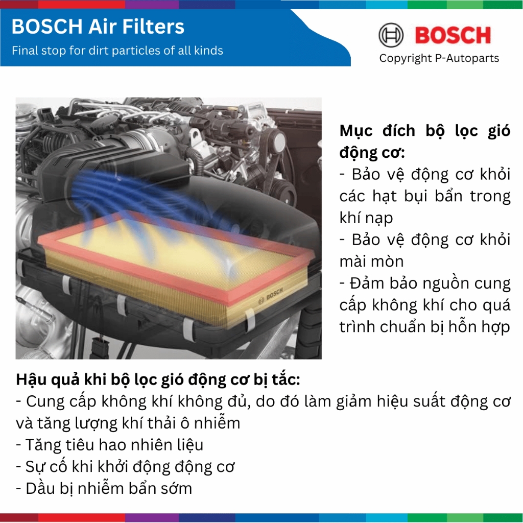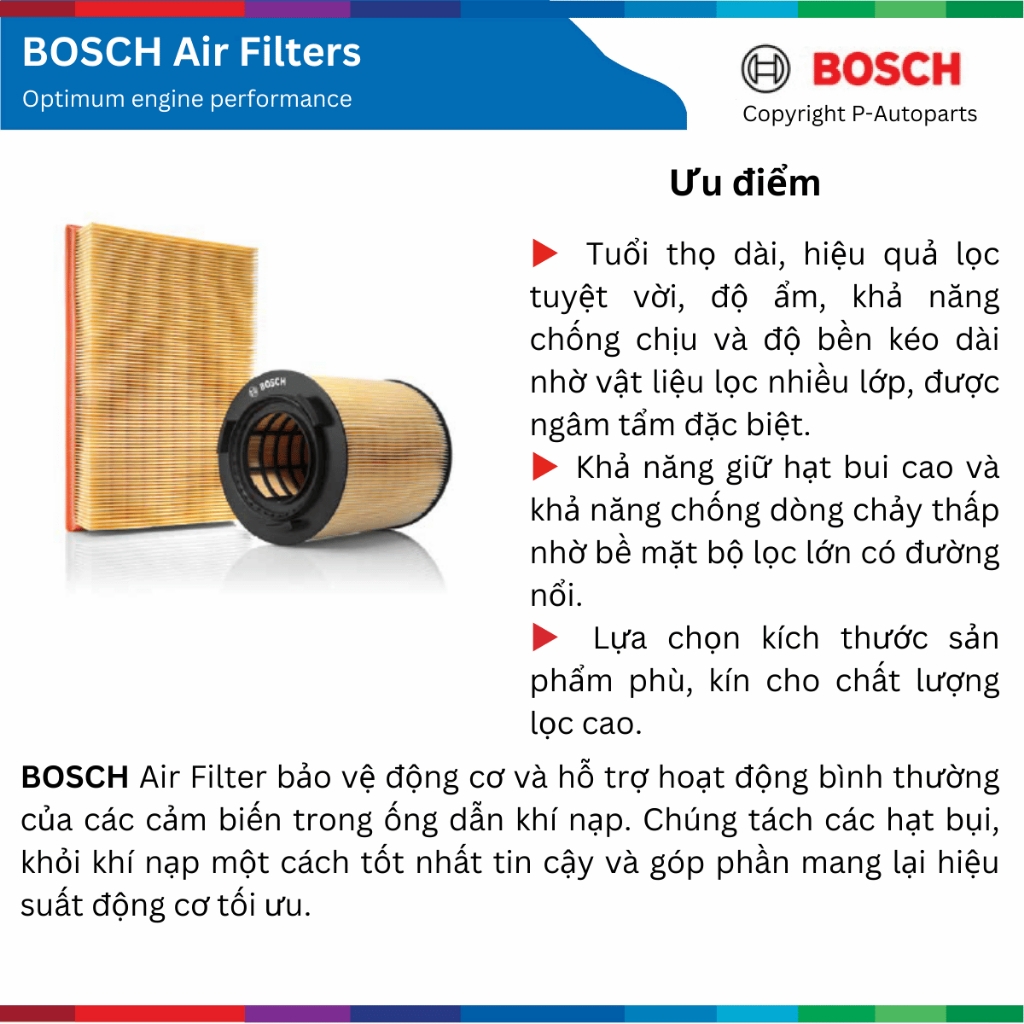 - Tên sản phẩm: lọc gió động cơ - BOSCH Air Filter
