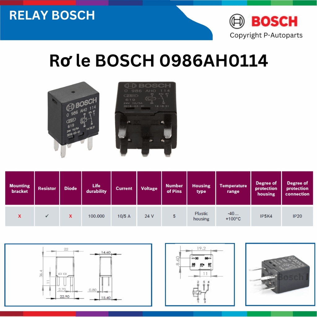 Rơ le BOSCH 0986AH0114 24V 5 chân nhỏ không bát, relay BOSCH