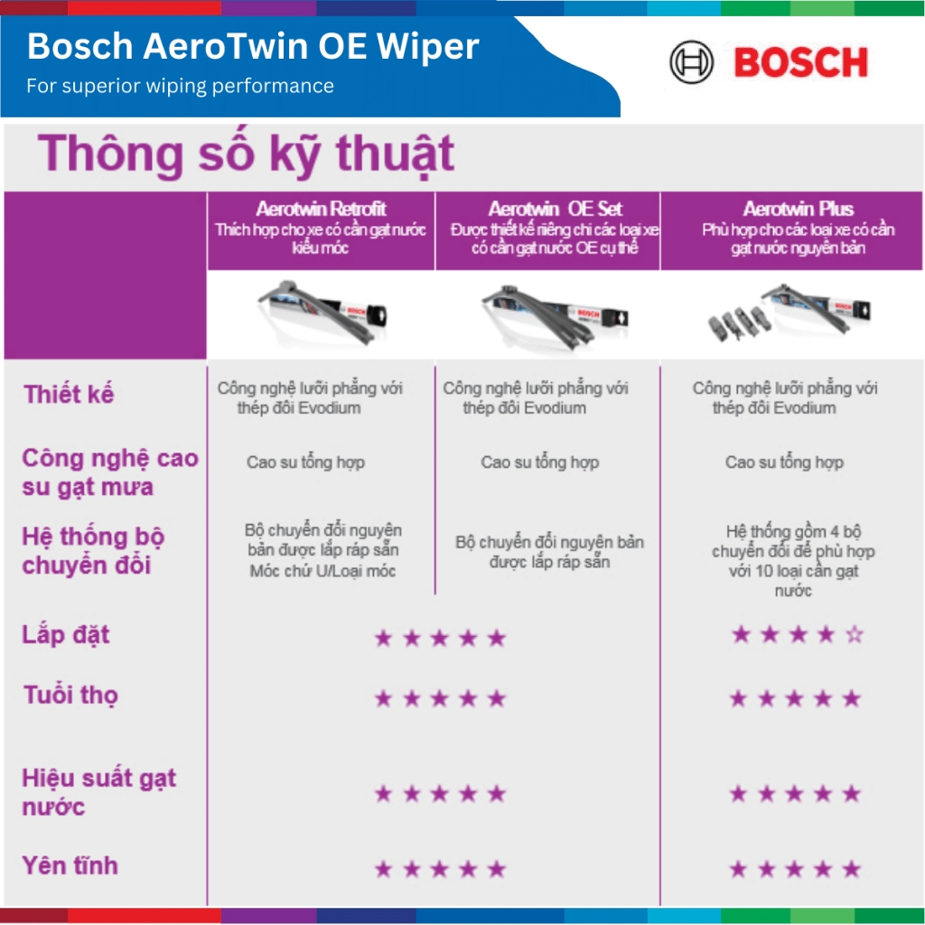 BOSCH AEROTWIN EURO SET là sản phẩm gạt mưa phù hợp cho loại xe cụ thể.